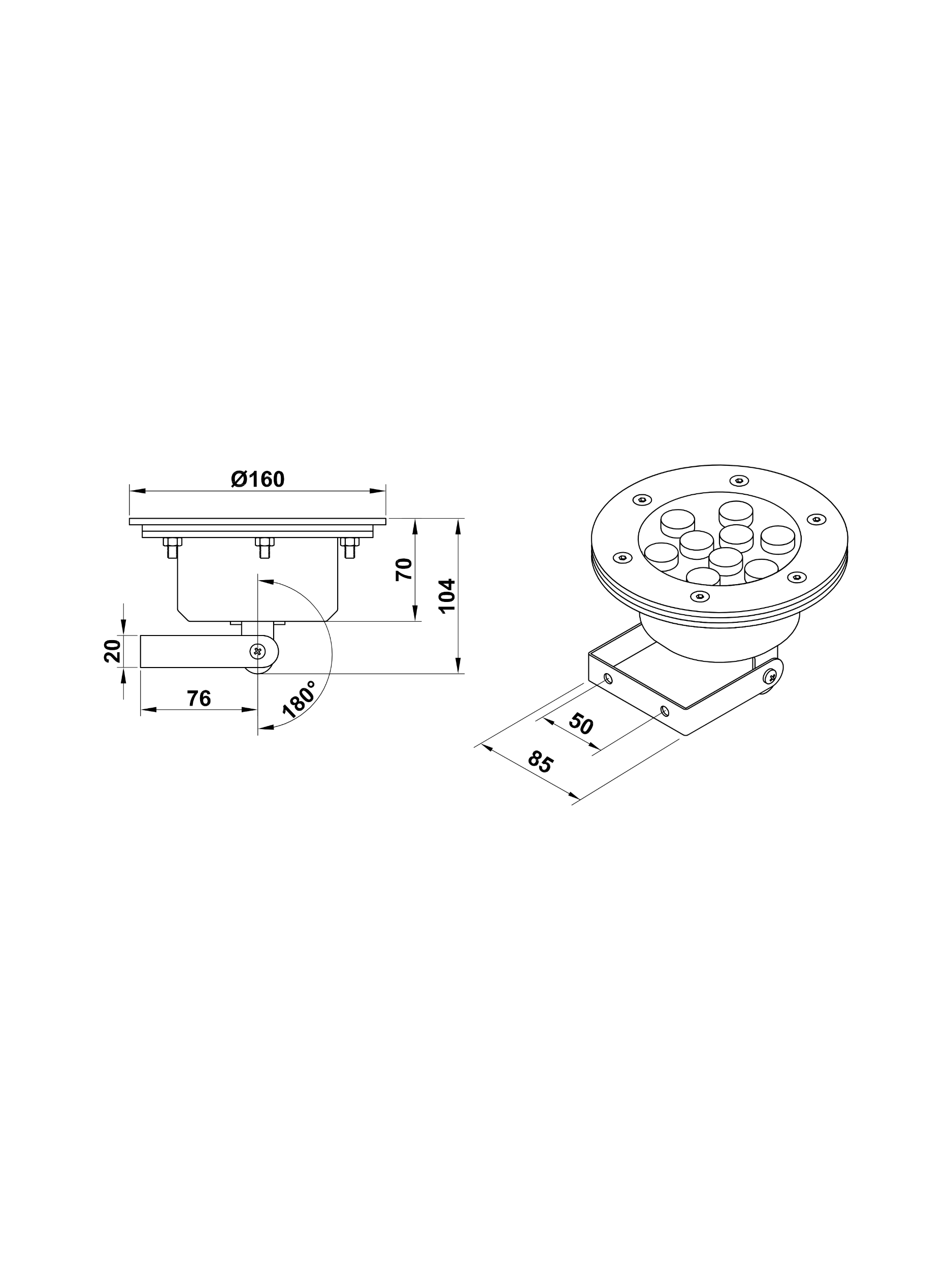 Krom gövdeli ayaklı power LED havuz lambası. RGB ve tek renk seçenekleriyle, 6 veya 9 LED’li versiyonlar mevcuttur.