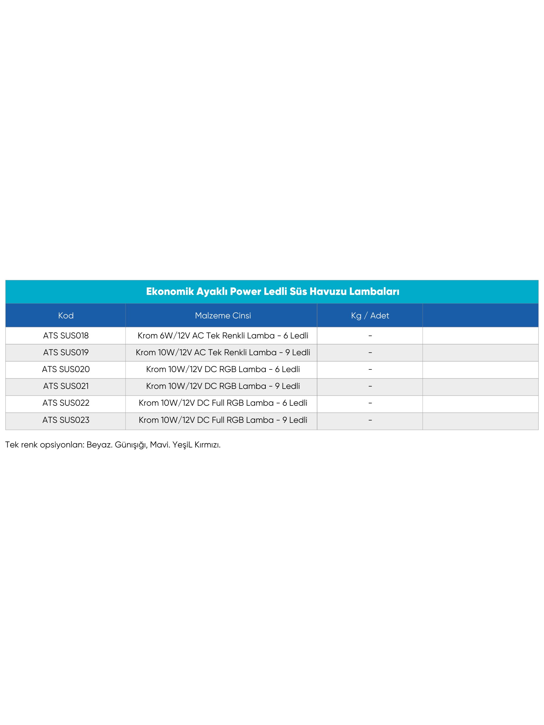 ATS SUS018 – 6W / 6 LED / 12V AC / Tek Renk