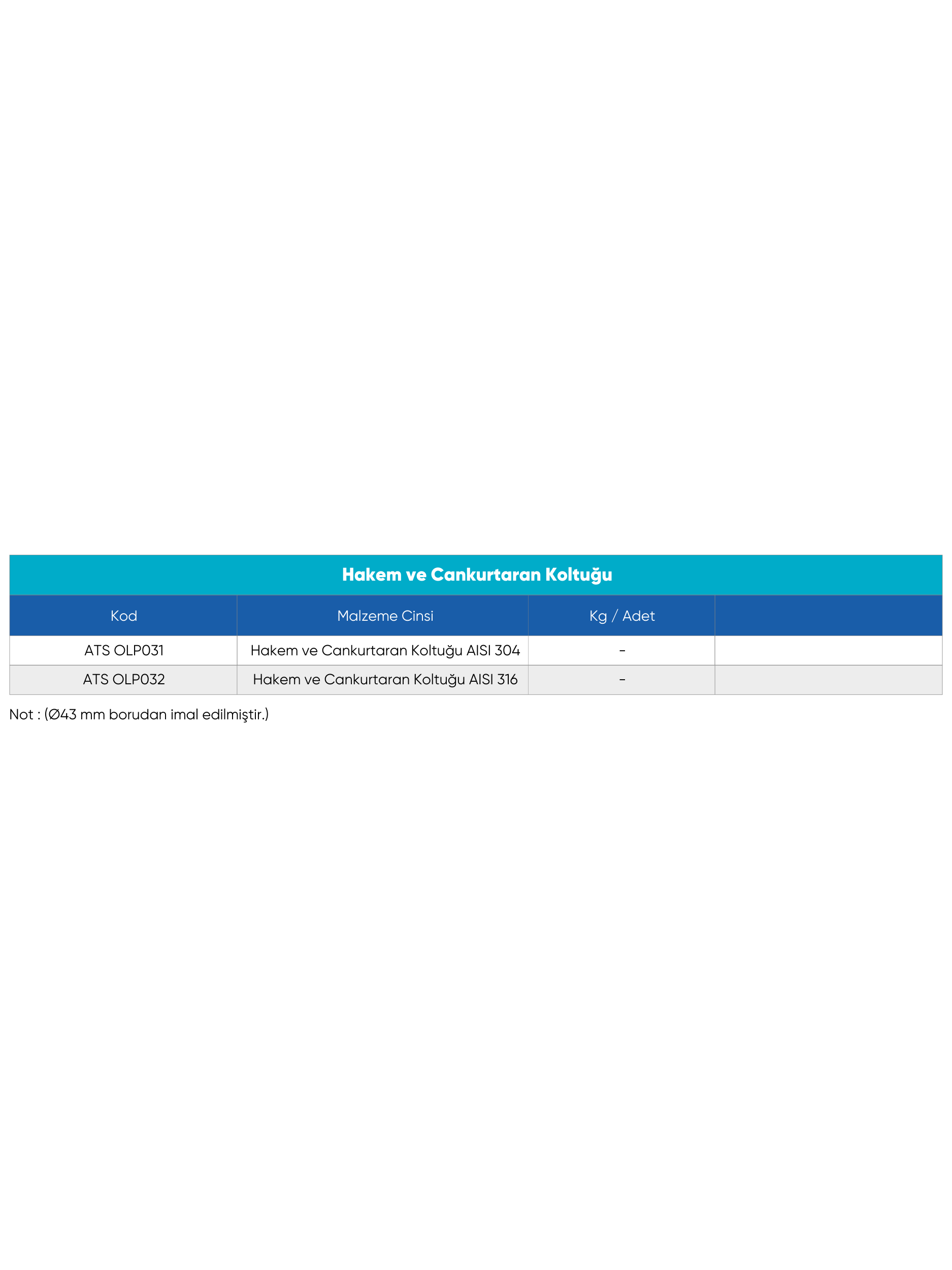 Hakem ve Cankurtaran Koltuğu AISI 304, Hakem ve Cankurtaran Koltuğu AISI 316