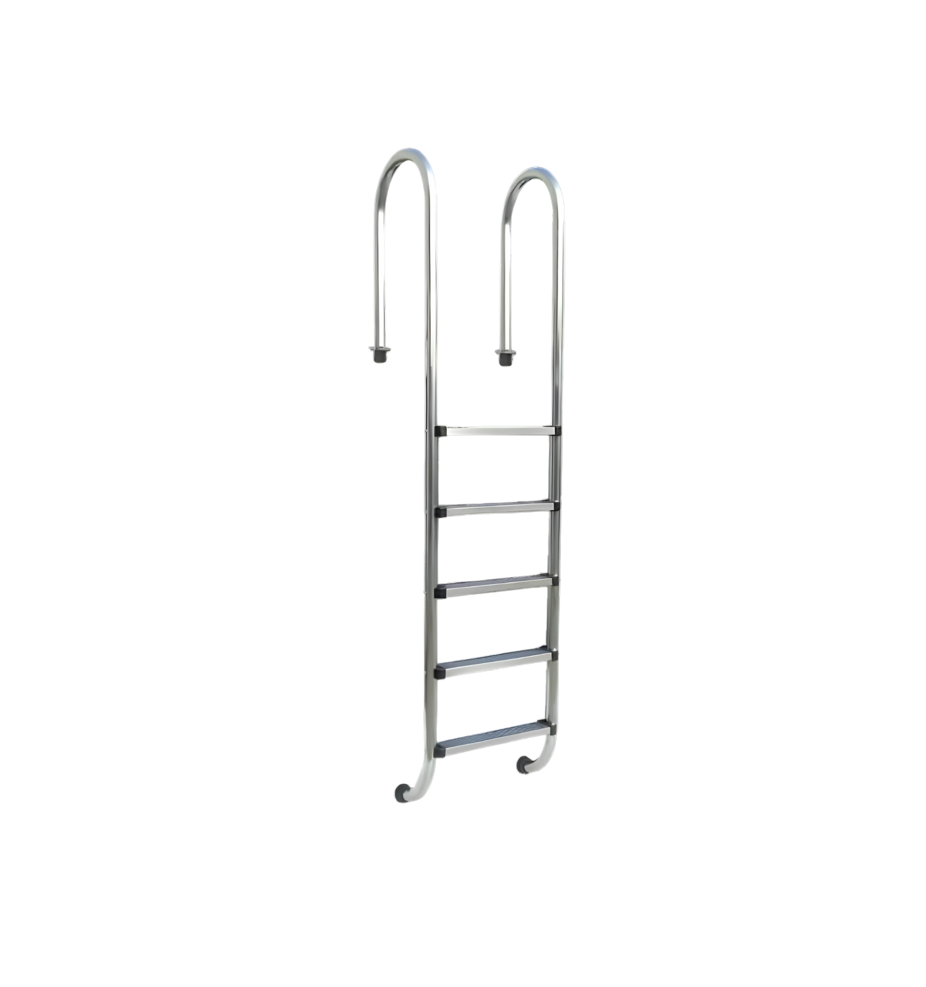 Muro tip paslanmaz çelik havuz merdiveni, kaymaz çelik basamaklı, Ø43 mm boru çapında, 2-5 basamaklı seçenekleriyle. Güvenli ve dayanıklı havuz erişimi sağlar. Montaj aparatları dahil.