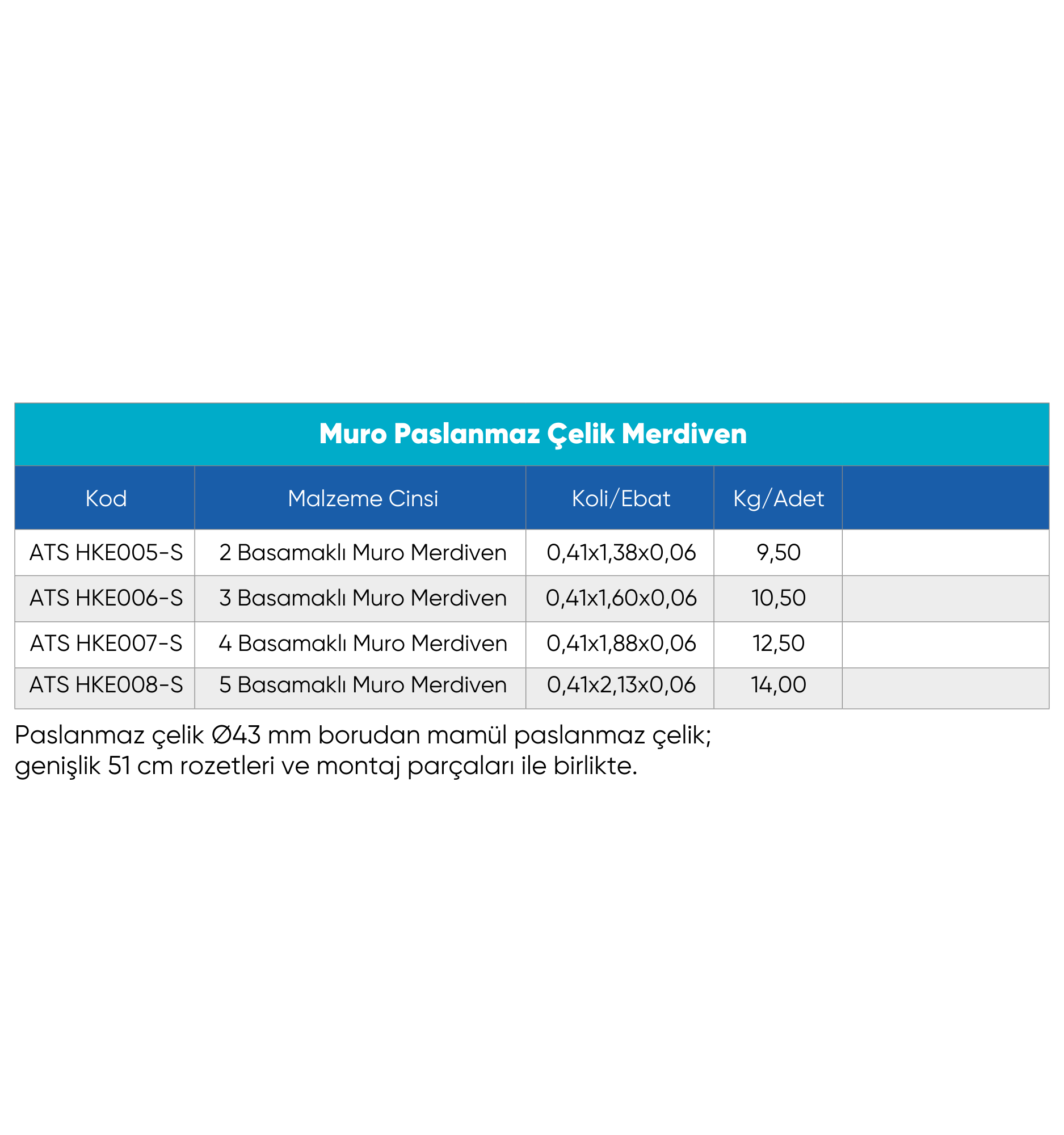 5 Basamak: 0,41×2,13×0,06 m (14,00 kg)