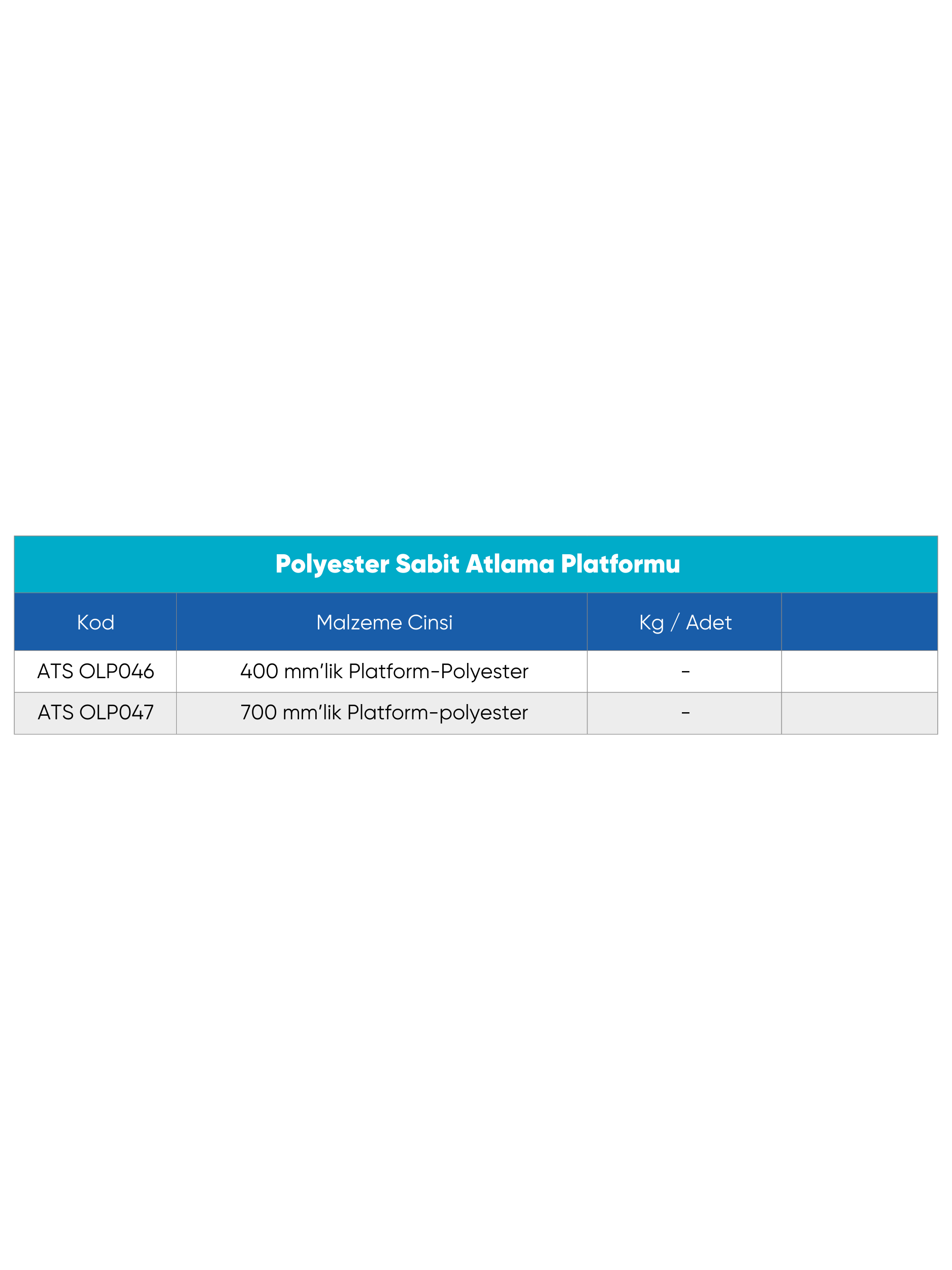 | Polyester Sabit Atlama Platformu Seçenekler | 400 mm’lik Platform-Polyester, 700 mm’lik Platform-polyester |
