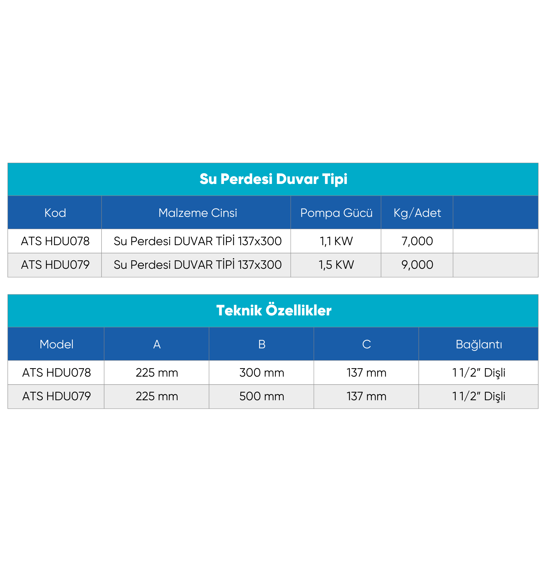 Alternatif olarak 1,5 KW pompa gücüne sahip 500 mm uzunlukta model de mevcuttur (ATS HDU079).