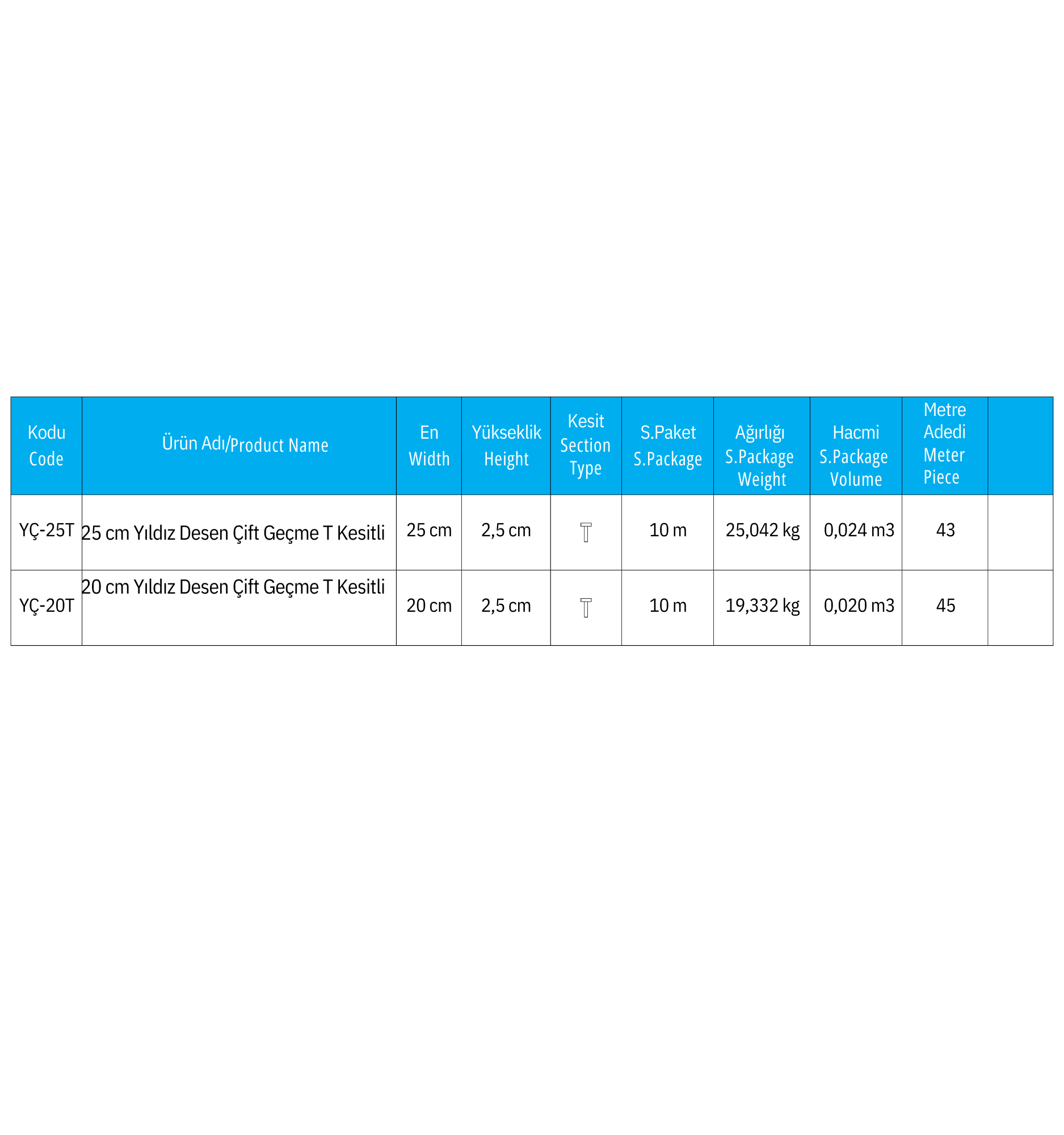 | Yıldız Desen Çift Geçme T Kesitli Havuz Izgarası Seçenekler | 20 cm Yıldız Desen Çift Geçme T Kesitli, 25 cm Yıldız Desen Çift Geçme T Kesitli |